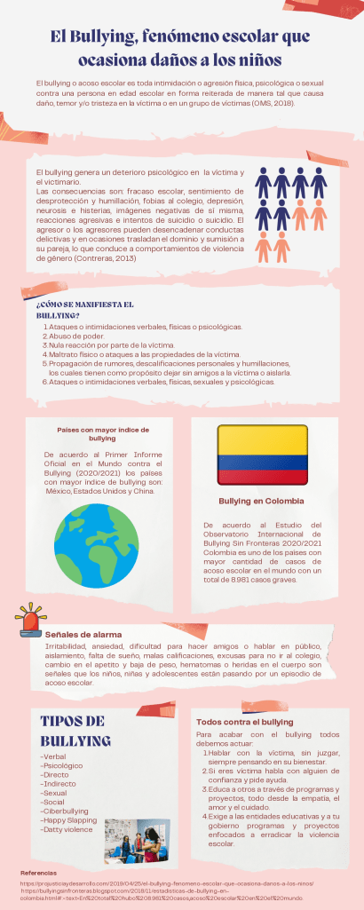 El ‘bullying’, un fenómeno escolar que ocasiona daños a los niños. Colombia es uno de los países con mayor número de casos de acoso escolar. El Estado, las instituciones educativas, la familia y la sociedad deben tomar medidas para transformar, prevenir, atender y sancionar estas conductas.